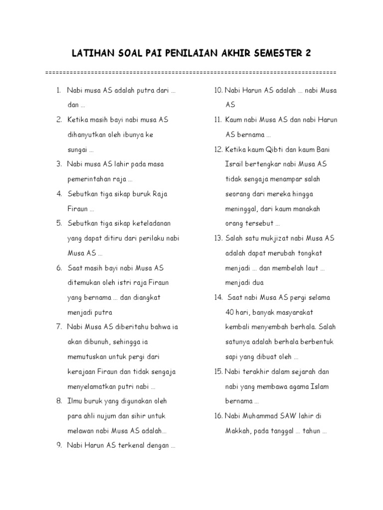 Latihan Soal Pai Penilaian Akhir Semester 2