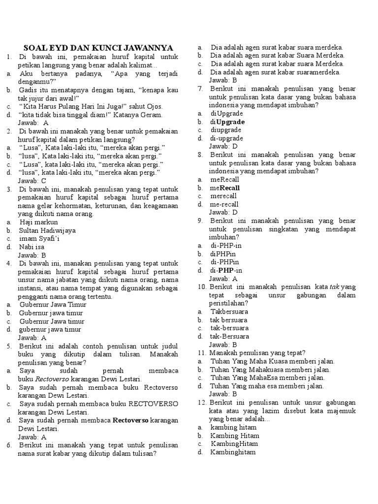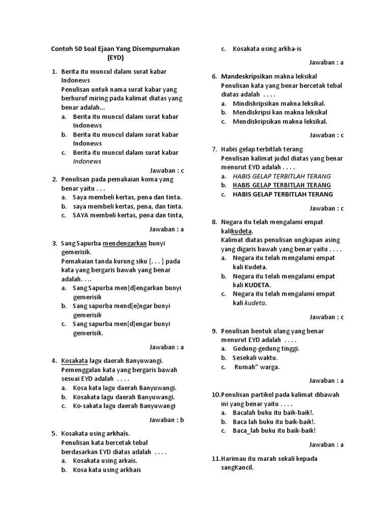 Contoh 50 Soal Ejaan Yang Disempurnakan Docx