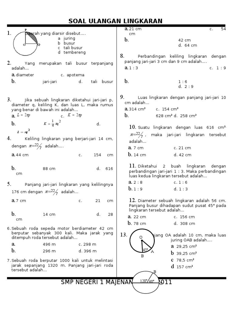 Soal ulangan lingkaran k.8 juragan les. Ajar putra- putri anak didik yang duduk di. Bagi gengs yang mau mempelajari materinya. Contoh soal tentang lingkaran inti disusun dalam bentuk pilihan berganda disertai pembahasan dan.